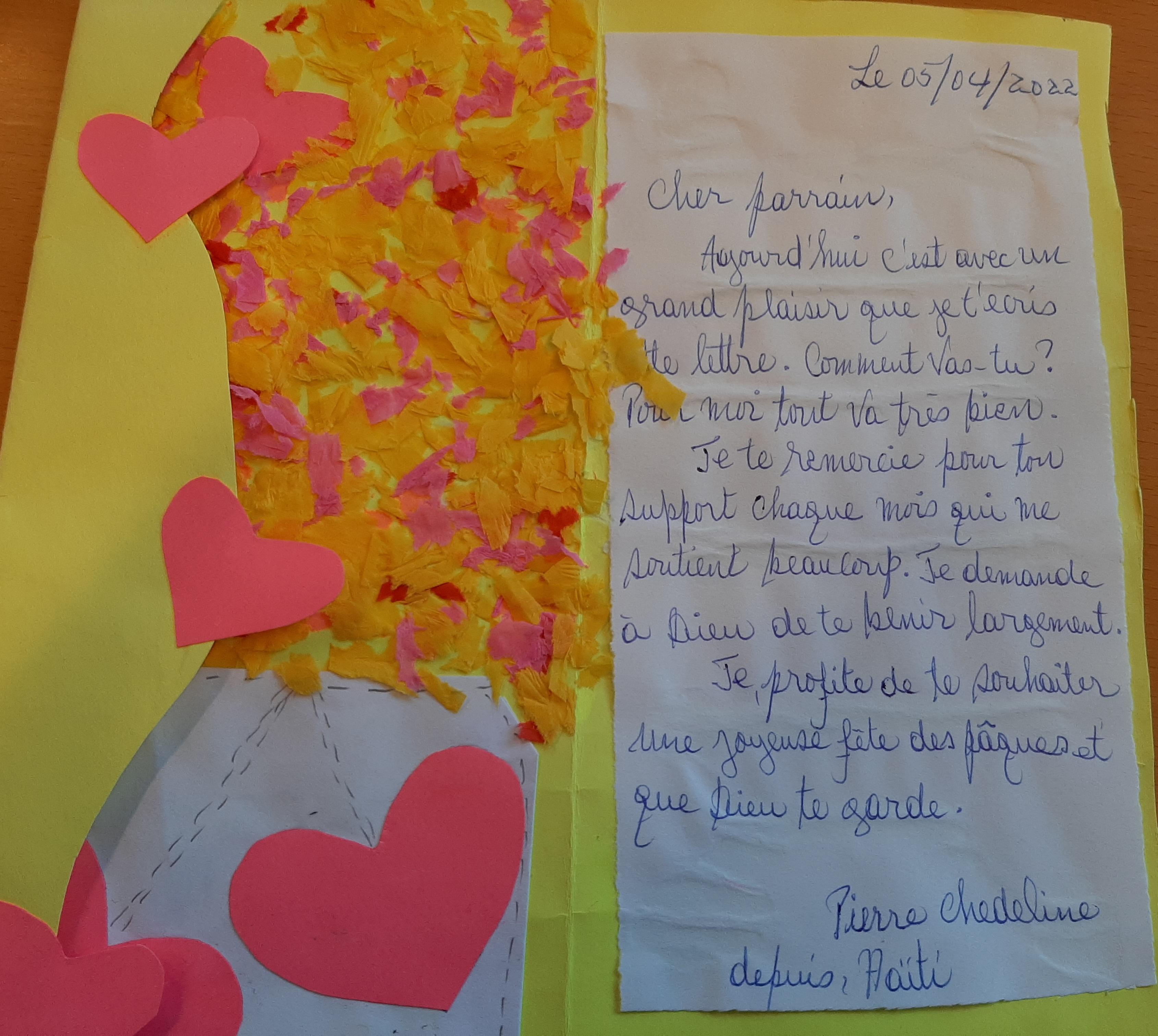 La famiglia Loïc Jecker si è fatta carico dell'intera sponsorizzazione di John e Chedeline Pierre ad Haiti per 6 mesi.